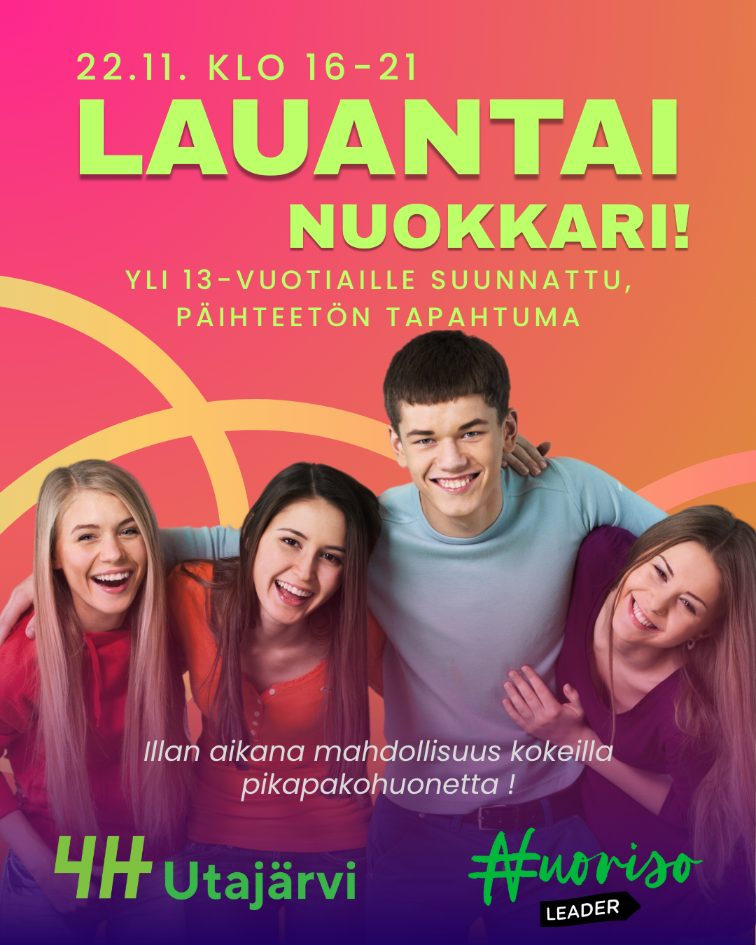 LauantaiNuokkari 22.11.2025 klo 16-21 Nuoriso-ja liikuntatalolla